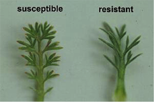 Probably the most favoured way of commercially controlling this weed in New Zealand turf though is through use of clopyralid (eg Versatill) or a picloram/triclopyr mixture (eg Victory Gold). Note however that we have recently located a strain of Onehunga weed in several locations north of Auckland that is resistant to both clopyralid and picloram, and this is now being found in other parts of New Zealand as well, such as Mount Maunganui. This is a warning not to rely too heavily on these two herbicides year after year to control Onehunga weed.